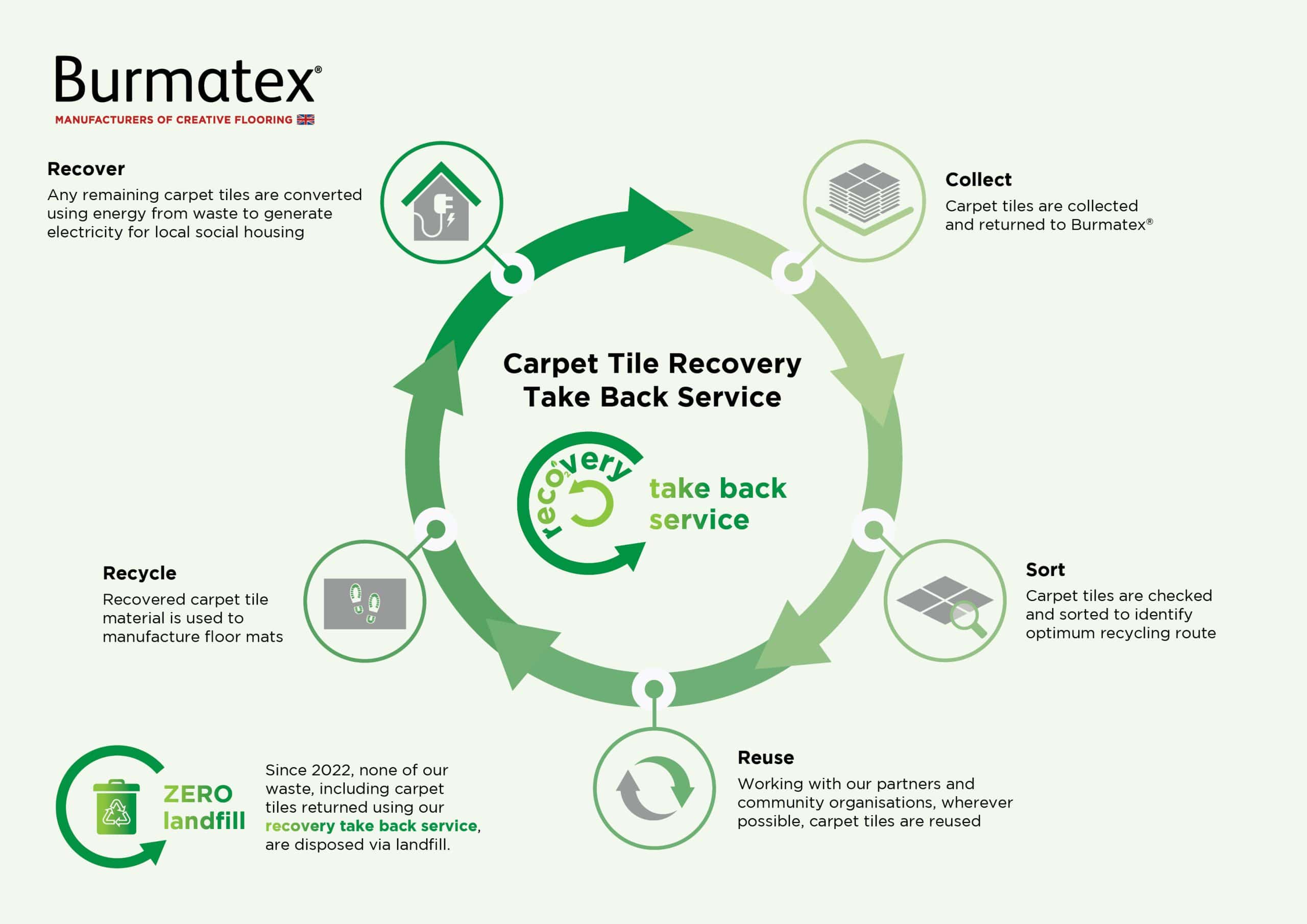 "By using the recovery take back service, you can ensure none of your used carpet tiles end up in landfill"