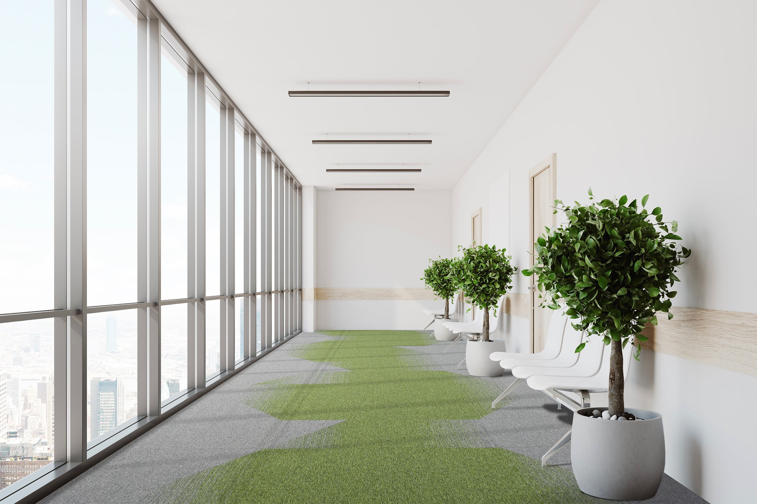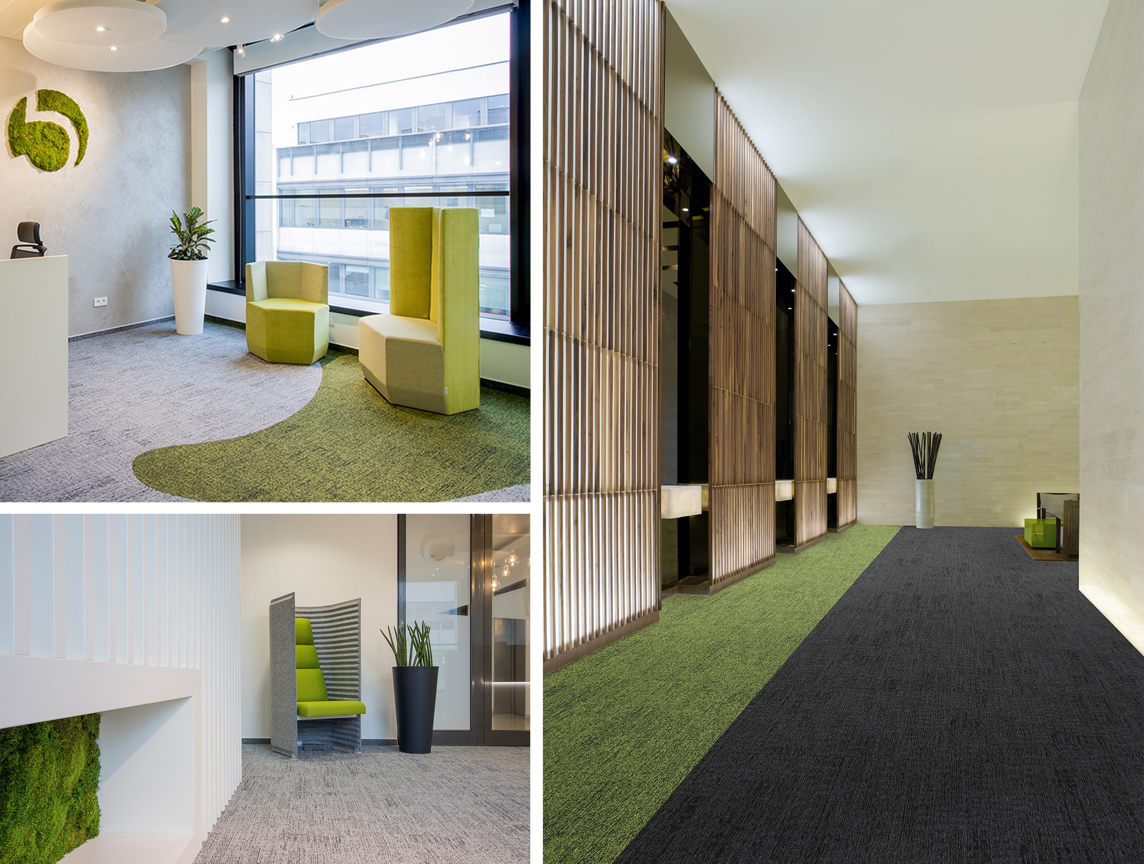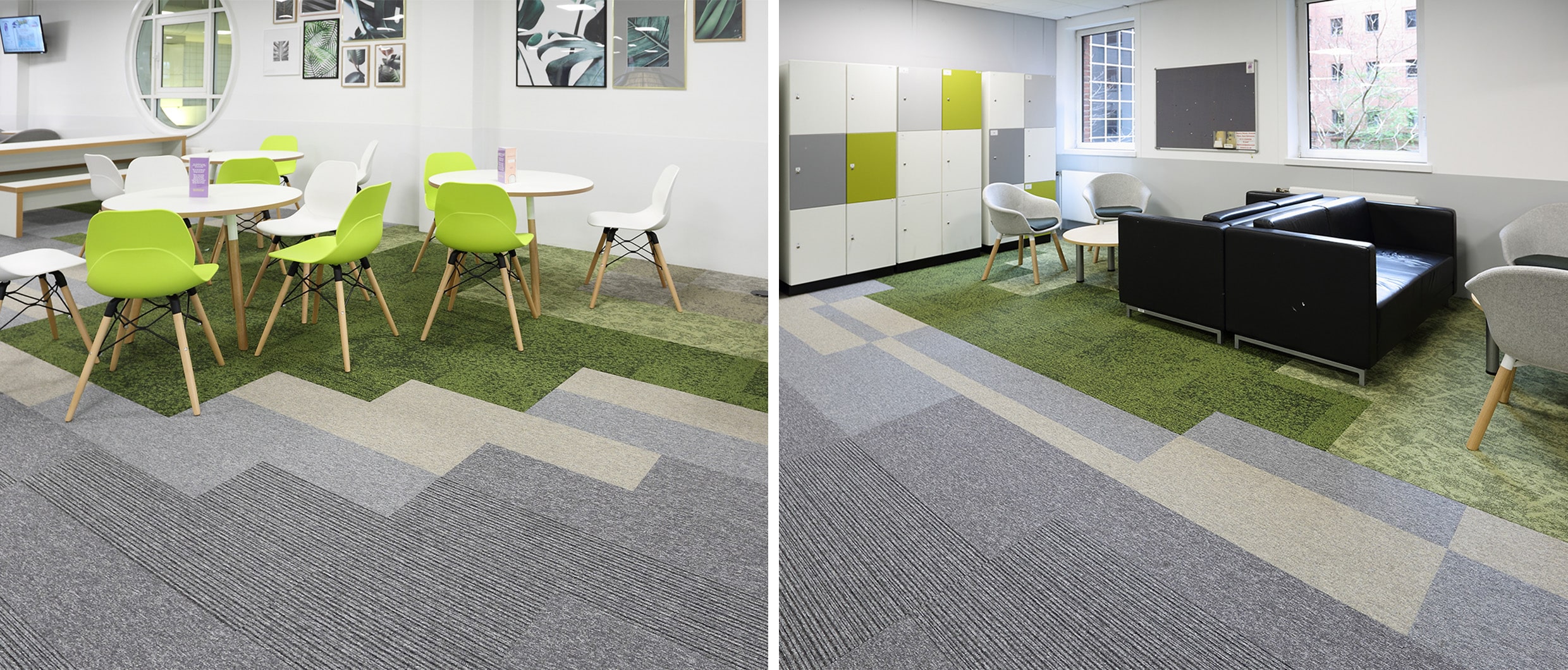 The above installation in Leeds is the perfect example of how well our products work alongside one another. It uses a combination of osaka, rainfall, alaska, tivoli and tivoli multiline. We love how the design layout has helped to create zones to break up the space. Bringing nature into your everyday life and having time away from the buzz of central areas of activity can create feelings of calm and relaxation. Incorporating 'zones' intended to separate you away from the noise and movement of the open place office can similarly have an effect to reduce stress and increase motivation.