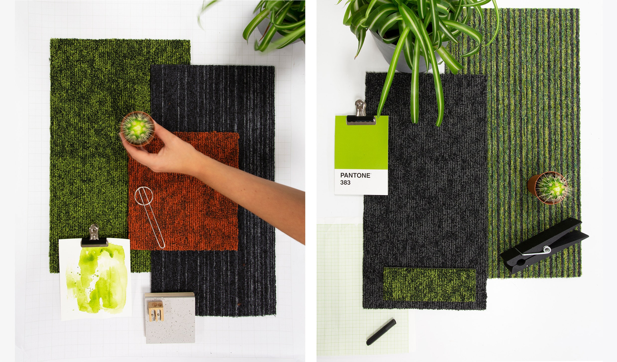 Schemes can be inspired by the outdoors through replicating the patterns, textures and colours. Our alaska carpet tiles perfectly relate to the invigorating outdoors due to its tactile and textural finish. The above schemes demonstrate how alaska can be used in such simple ways to create sophisticated, fresh and earthy looks.