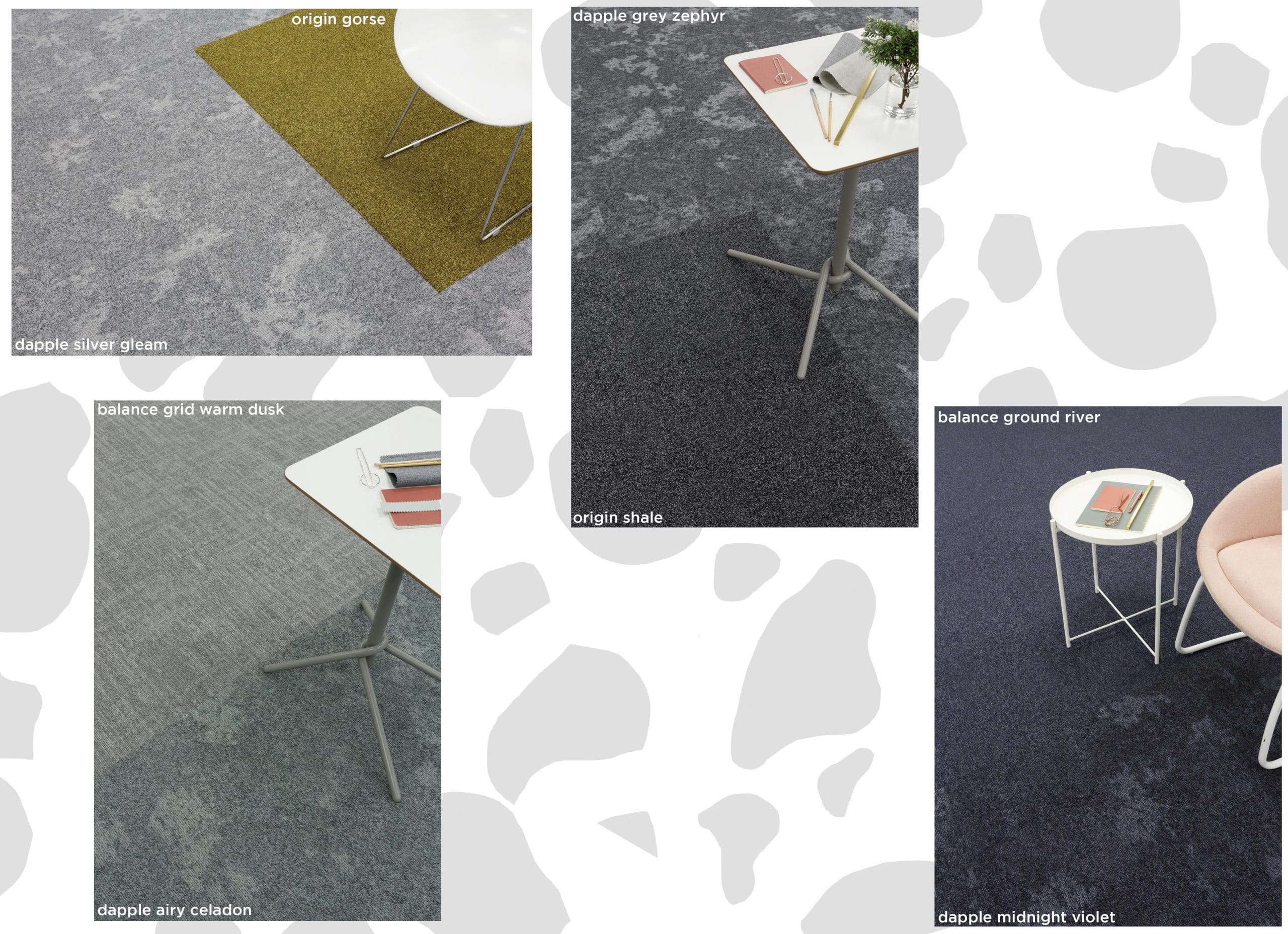 A large part of growing our multilevel loop ranges at burmatex is how each new collection can be combined with existing designs. Dapple has the most organic appearance of all the ranges we have launched so far, linking happily with our other nature inspired products alaska and origin. It can also create an urban meets natural mix when used alongside balance or osaka.